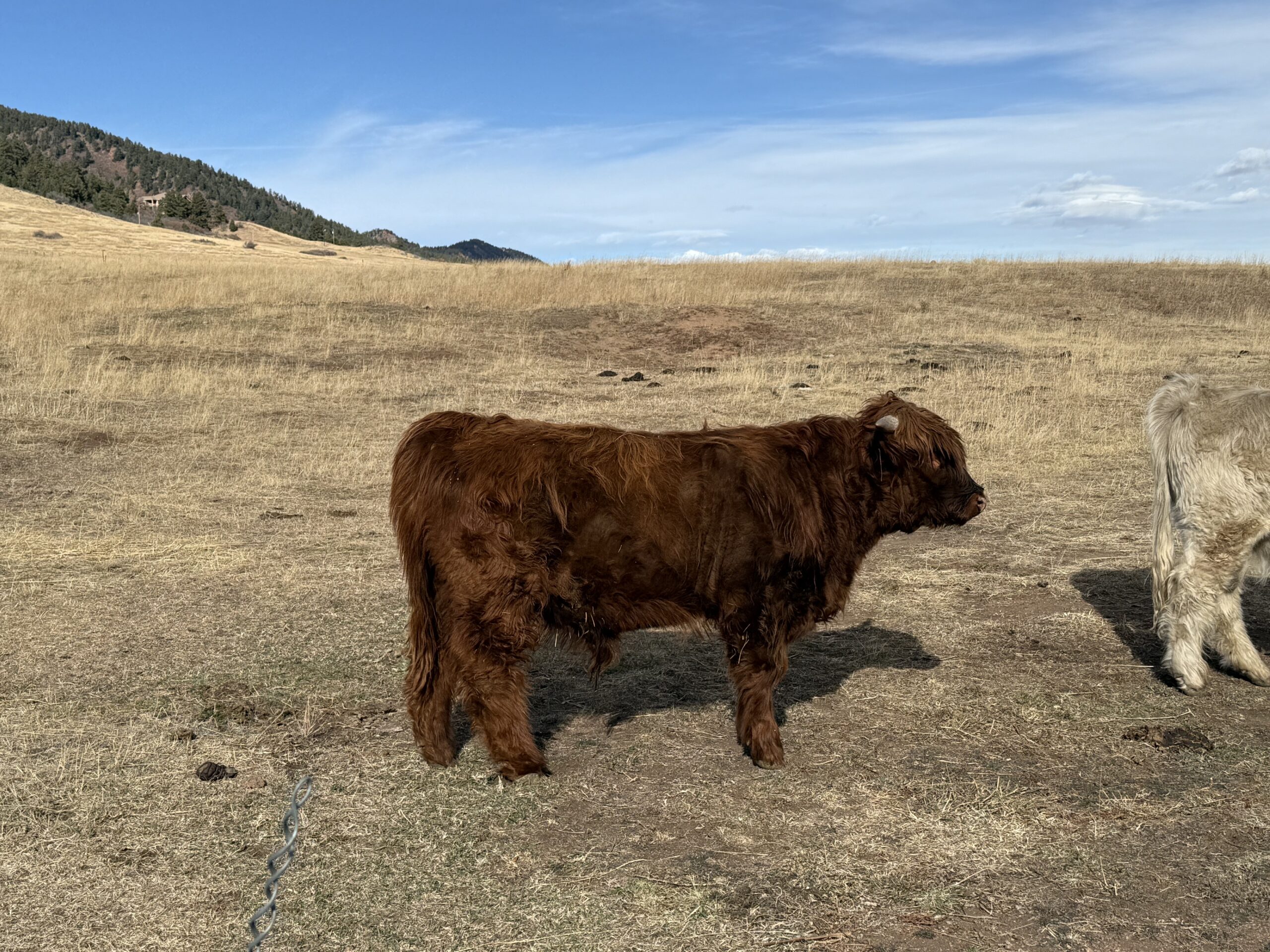 Blitz is a very well-bred prospect bull. He’s a spitting image of his sire, AH Ranch’s Patriot Mor. He has lots of brindling in his coat. He has been in a squeeze chute, haltered, and groomed. Both his sire and dam are extremely easy to work with.